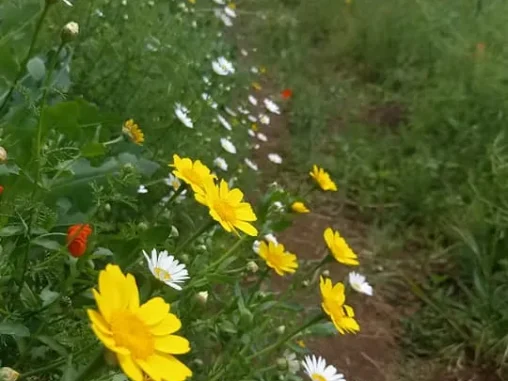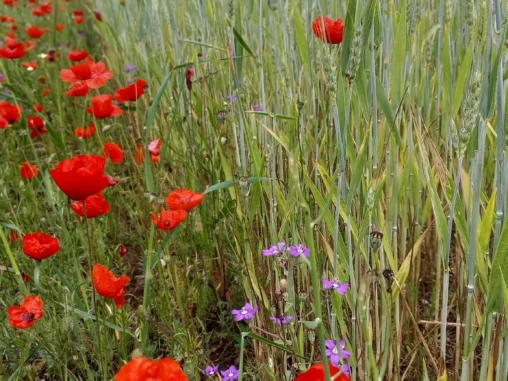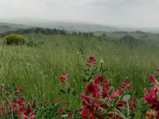 Jinak první část trasy do městečka San Lorenzo Nuovo byla taková zvláštně náročná, mezi polema a loukama, které byly krásně rozkvetlé a barevné, ale po štěrkové cestě, nekryté, foukal dost vítr a tak nějak už toho bylo dost… Potom jsem se v městečku posilnila jahodama a čokoládovou zmrzlinou + bagetkou se salátem a humusem a bylo líp.