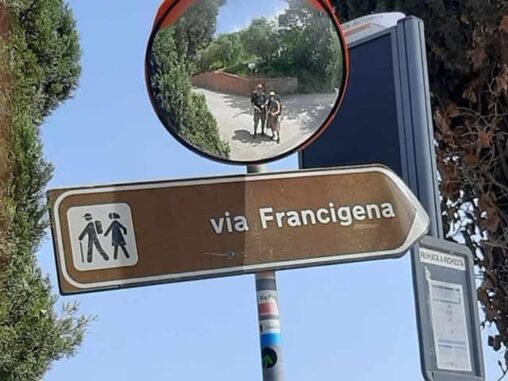 K cestě jsou dostupné informace v angličtině, italštině a francouzštině na oFiciálních stránkách a také je možné si stáhnout do mobilu aplikaci (je v ní i poutní cesta do Santiaga) Gronze Maps, kde jsou opravdu dobré informace o jednotlivých trasách, mimo délky a náročnosti také přehled ubytování (nejen v koncových městech etap, ale i cestou), včetně cen a kontaktů na ně, což jsme 3x využili. Trasa je perfektně značená, ani jednou jsme nebloudili (a do mapy jsme koukli občas, jen ve větších městech). Na mnoha místech je možné dočerpat pitnou vodu, což je fajn, nemusíte nosit větší množství (1,5 l stačilo na dojití k dalšímu kohoutku).