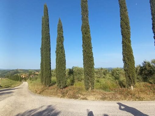 Cesta je zčásti lemována starobylými kameny, po kterých Římané kráčeli před staletími. Krajinu Toskánska charakterizuje vlnitý terén (a to doslova), někde je mírné stoupání a klesání (ale najdou se výjimky, jako je Radicofani s jeho dost velkým 9 km stoupáním), olivové háje, lískové sady, louky a světlé listnaté lesy (spíš lesíky, jsou jiné než ty naše). Když se blížíte k Římu, charakter krajiny se mění, ale zachovává si takový svůj charakteristický ráz. Olivy a lísky vás doprovázejí velmi dlouho. Zemi formovala sopečná činnost a ta se stále projevuje skrze termální prameny a kráterová jezera, které jsou po trase. My neměli „to štěstí“ některé z nich navštívit, ale bylo nám dost horko, takže nám to vlastně ani nechybělo 😉 A chci vyzdvihnout opravdu malebná městečka, která lákají k prozkoumání, lahodí oku a díky středověkému nádechu v nich můžete cítit historii zapsanou do zdí staveb. Ač se považuji za spíše „přírodní typ“ a fascinují mě krásy přírody, tahle městečka a osady mě dostaly 😍