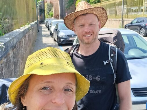 Přidal se ke mně Michal, který už putoval do Santiaga a dlouho na pouť do Říma chtěl (a pak ještě do Jeruzaléma a možná na nejsevernější bod v Norsku). A já byla vlastně ráda za parťáka do pohody i nepohody, protože tahle poutní cesta je méně frekventovaná a méně vybavená „poutnickými pomocníky“, než cesta do Santiaga, která mě zatím pro její masovost nelákala … ale kdo ví, zda se to teď nezmění 😉 Každopádně cesta do Říma mě aktuálně lákala mnohem více.