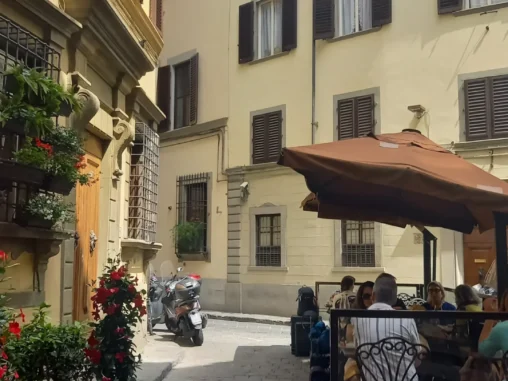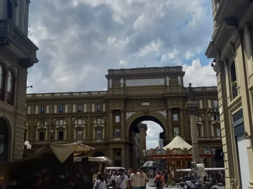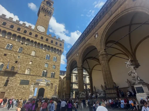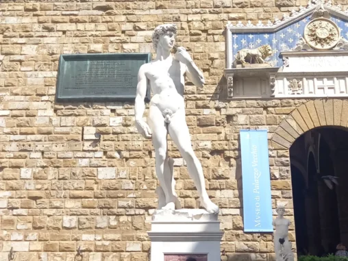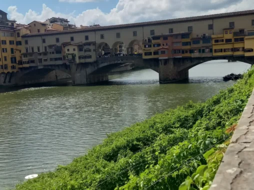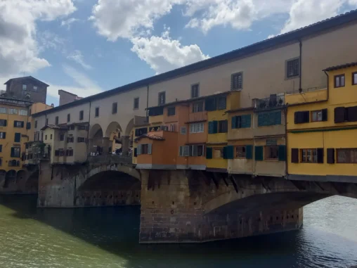 17. 5. 2024 ve 12:10 jsme vzlétli z pražského letiště a během 1,5 hod. přistáli ve Florencii. Přejeli jsme tramvají do centra a vydali se přes nádherné ulice a paláce (to jsem nečekala, je to opravdu velmi nádherné město) k Ponte Vecchio – mostu „zlatníků“ – který od 14. století spojuje břehy řeky Arno a je velmi zajímavý tím, že na ho lemují krámky a nad nimi prochází Vasariova chodba. Jako jediný most ve Florencii nebyl za II. světové války zničen. Dřív zde byly obchody všeho druhu (řezníci, rybáři a později i koželužníci, jejichž „odpad“ se házel do řeky a způsoboval nepříjemný zápach. Proto v roce 1593 Ferdinand I. rozhodl, že na mostě mohou mít své krámky pouze zlatníci a klenotníci. Za nás kdyby tam byly kavárničky nebo jiné obchůdky s tradičními věcmi, udělají líp, ale i tak byl moc hezký.