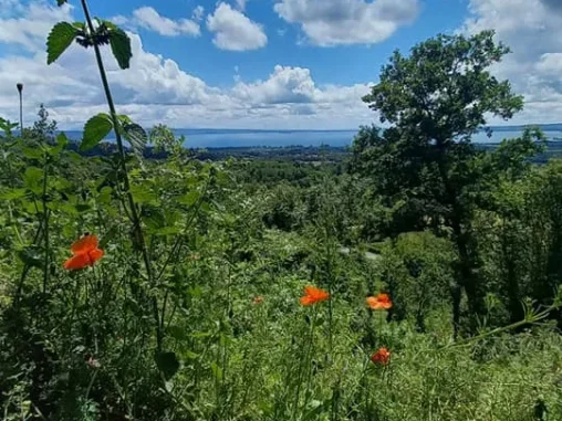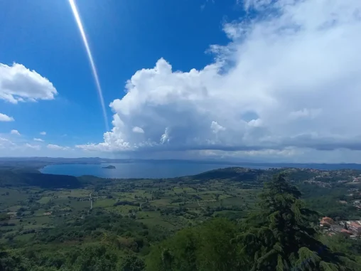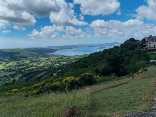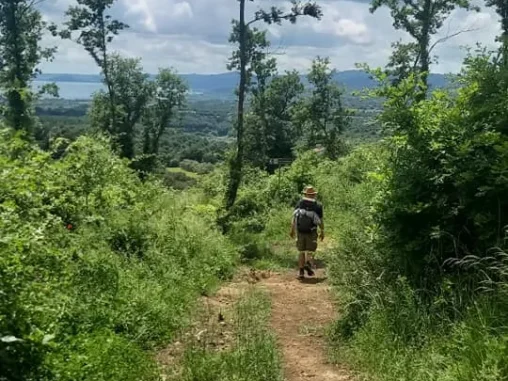 Když jsme vyrazili dál (přes prohlídku dalšího nádherného kostela), otevřel se nám překrásný výhled na jezero Bolsena a najednou všechno bylo jinak. Za chvíli jsme vstoupili do nádherné lesní krajiny, kde jsme se shodli, že vnímáme, jak nás to nabíjí, jak nám les prochází každou buňkou 🌿 Navíc začalo víc svítit sluníčko, takže jsme ocenili jeho stín. A i když jsme šli do kopce (což mi s krosnou jde nejlíp), tak jsme byli nad jezerem a ty nádherné výhledy!