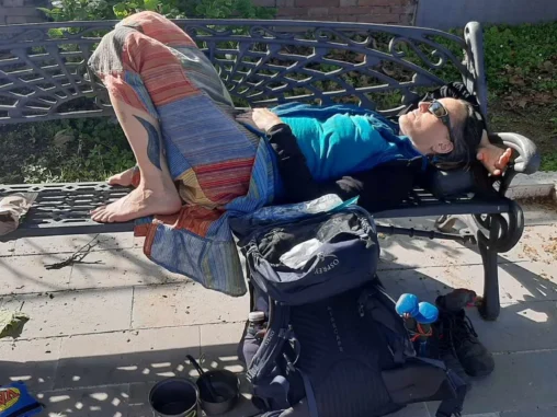 Když jsem se ptala, kde bych si mohla ještě nějaký čas odpočinout, umožnili mi nechat si zavazadlo u recepce a pohybovat se buď v přilehlé zahradě, nebo využít gauč v recepční místnosti. Cítila jsem, že ještě potřebuji načerpat síly, jenom snést batoh z prvního patra byl výkon. Ne, že by mě bolely nohy, těm bylo lépe, ale byla jsem slabá a taková malátná, pobolívala mě hlava. Dopoledne jsem strávila mezi lavičkou na zahradě (kde byl stín a byla mi zima), gaučem v recepci (která byla plná jeptišek, protože přišel jakýsi jejich nadřízený a měli konsorcium či co a potom „pohovory“ s ním) a mezi záchodem (zastihl mě mírný průjem).