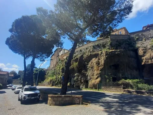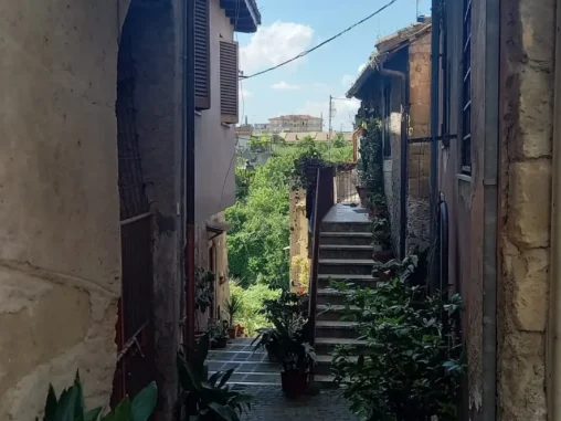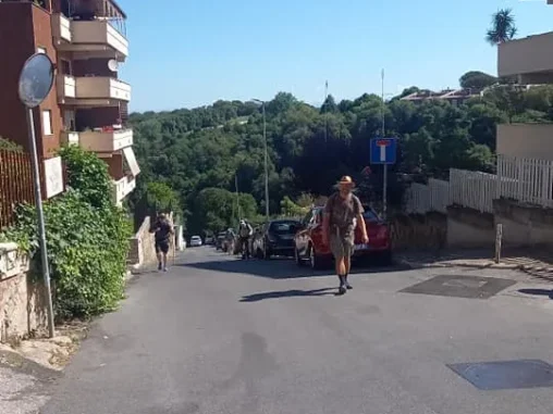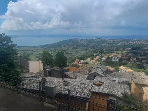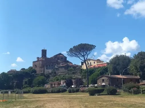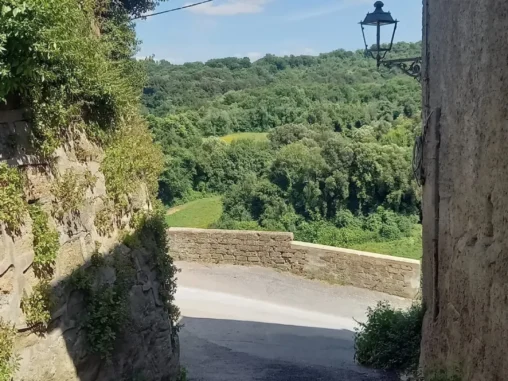 Doráželi jsme se k městečku Campagnano di Roma, které na nás čekalo úplně na kopci, ten poslední úsek do kopce naštěstí vedl stínem. A jak už jsem psala, chodit do kopce je pro mé nohy příjemnější, takže jsme se tam vyšplhali. Městečko nádherné, sice jak po vymření, ale překrásné uličky a vlevo pohled dolů do krajiny, vpravo pohled dolů do krajiny, jak na hřebeni hory. Pak jsme došli na náměstíčko, kde tekla voda, která už zase došla, takže jsme se vydatně napili a Michal šel prozkoumat uličky, zda je něco teď (bylo po 15. hod.) otevřené. Než se vrátil, prošli kolem stejní poutníci, jako když jsem svačila před vodopády. Všichni jsme uviděli jediný otevřený bar, kde už poutníci zaujali svá místa. Pro ně tady etapa končila, protože tam měli ubytování. Dávali si aperol, vínečko, pivečko… Já tenhle způsob putování nevyhledávám, ale přeji jim to. Taky jsme se tam přesunuli, dala jsem si kávu (bez kofeinu, naštěstí už i Italové ji mají) a potřebovala jsem dobít mobil. Dále mé tělo odmítalo jít, vypovídalo služby. Došli jsme na další větší náměstí, v živější a novější části města a já začala hledat, jak se přesunout dál jinak, než pěšky. Měla jsem v nohách asi 17 km a fakt už to nešlo.