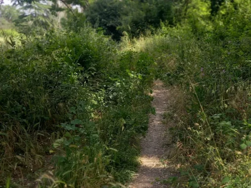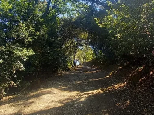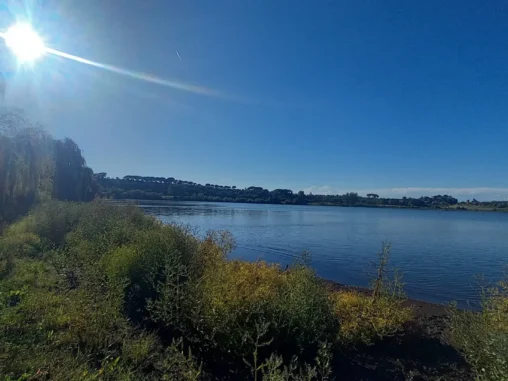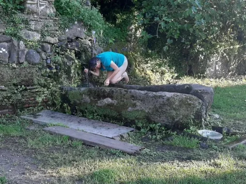 V Sutri jsme vystoupili a prošli mimo centrum, které vypadlo, že je krásné, ale tolik nádhery za den? 🤭 Pak jsme se skrze přírodu, místy zajímavou, místy monotónní, místy dost náročnou (po silnici), dostali na místo, které jsem si vyloženě vymodlila 🙏🏻 Už jsem měla dost, nikde stín, docházela mi voda a brněly mě 3 prsty na pravé noze, potřebovala jsem se vyzout. Modlila jsem se o trávu ve stínu a vodu. No a kdyby tam byla lavička, tak fajn bonus. Dostali jsme to všechno! 🤩 Takže jsme si vyzutí dali sváču, já doplnila vodu, ošplíchla obličej a pak jsme pokračovali dál vědouce, že po asi kilometru nás čeká odbočka k jezeru, které chceme prozkoumat.