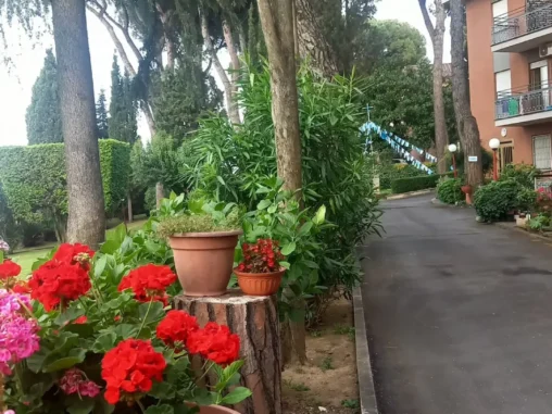 Našla jsem, že za hodinu jede autobus do La Storta, což je start další (poslední) etapy Via Francigeny. Michal si šel nakoupit s tím, že pak počká, až odjedu a půjde putovat dál, já šla na autobus. Přinesl mi pečivo a humus, tak jsem před odjezdem něco snědla a pak se vezla 45 minut do La Storty. Nějak jsem nepochopila místní placení za dopravu, řidič něco říkal (Italsky) a poslal mě dál, ať nepřekážím s velkým batohem a pak už to neřešil. Takže tentokrát jsem jela zdarma – ceny jsou tu dost vysoké a tak jsem to s vděčností přijala jako dar. Sledovat, kde vystoupit, je tady taky oříšek, protože značky stanic jsou očíslovány takovým maličkým 5ti mistným číslem, takže ve chvíli, kdy ho vidíte, už je pozdě, je potřeba si zazvonit předem, aby vám bus zastavil. Tak jsem to bedlivě sledovala, až jsem vysledovala a povedlo se mi to, takže jsem pak ubytování, které jsem našla v aplikaci k poutní cestě, neměla daleko.