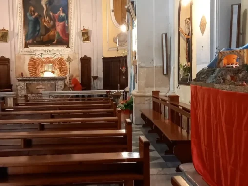 Ještě před bouřkou a lijákem jsme stihli večerní procházku městem, jeho krásnými úzkými nazdobenými ulicemi (měli tu svátky, všude zdobení květinami a také obrazy na stěnách domů), navštívili pár kostelů (v tom jednom se připravovali s pianem na nějaké vystoupení, ale nechtělo se nám čekat, u Italů nikdy nevíte, jak dlouho), tohle všechno je součást cesty.