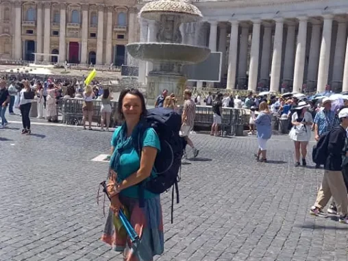 Ovšem poslední 2 km k bazilice di San Pietro byly spíš za trest, jen stále rovně širokou ulicí, která byla stále více zaplněná lidmi, až ke konci se skoro nedalo projít, také kvůli uzavírce. Neděle a ještě závěr Giro di Italia udělaly spolu s krásným počasím své. Sotva jsme se na náměstí před bazilikou prodrali… a vyfotili. První info centrum bylo zavřené a v tom druhém nedávají certifikáty, dokonce ani razítka. A jelikož je prý neděle, centrum pro poutníky je zavřené 🤷🏻♀️ Tak nějak mi to zapařená hlava nebrala, je sice fakt, že pouť jsme nepodnikli kvůli certifikátu, ale … bylo mi to líto. Dala jsem si kafe a zmrzlinu, abych se vzpamatovala, pak jsme se prodrali davy turistů k metru, zajeli se podívat na Coloseum a potom už na autobus, který nás dovezl na letiště.